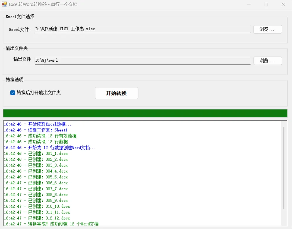 查看结果:自动打开输出文件夹,所有Word文档已生成