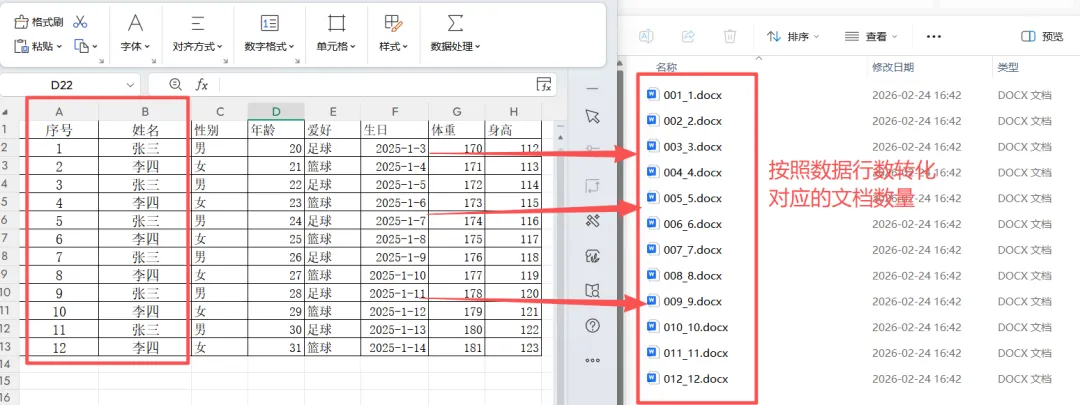 传统的复制粘贴方法:选择一行数据 → 新建Word文档 → 粘贴 → 调整格式 → 保存 → 重命名... 如果有100行数据,就要重复100次!😫