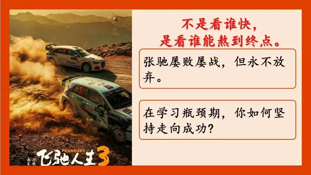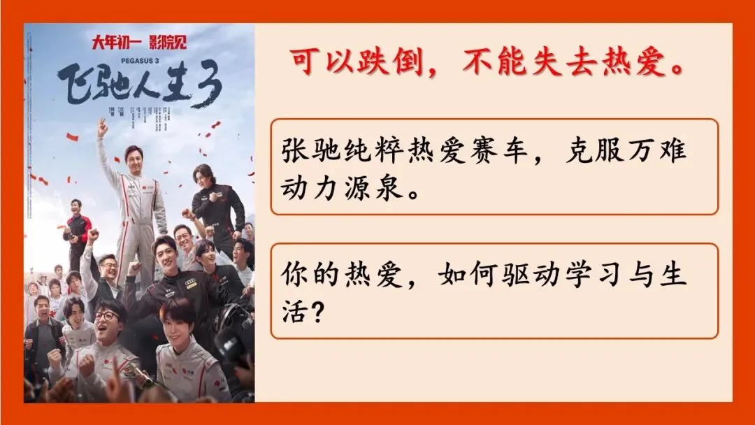 愉快的假期总是匆匆结束,即将迎来春季开学啦,大概也是最短的一个下半学年。今天给大家带来开学第一课PPT,以春节档热映的电影飞驰人生为背景,既有趣也结合了开学主题。有需要该孩子们做开学第一课、收心教育的老师们,都可以借鉴参考!获取春季开学第一课PPT 热爱是永不熄火的引擎 的方式如下:在编号1开学第一课的第十个文件里,大家根据需要去对应的文件夹里查找即可,课件有预览图,预览图的名称和PPT的文件名称是对应的!也可加入公众号会员,所有资料都能用,