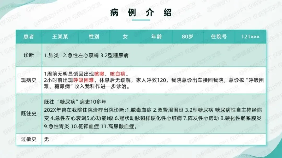 >【PPT】一例肺炎合并心衰患者的护理案例查房分享