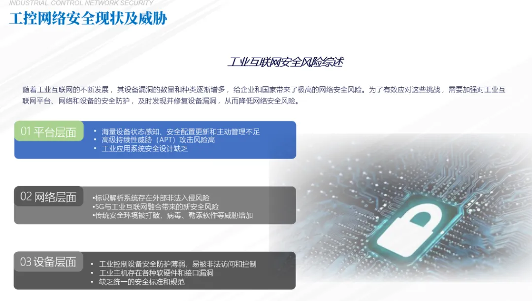 方案的技术内核聚焦于工业协议的深度识别与异常行为检测。不同于传统IT防火墙基于端口和IP的粗放式管控,"双屏合规"系统内置海量工控协议特征库,可对应用层载荷进行逐字节解析,精准识别非法功能码、异常寄存器访问及超规参数设置等攻击特征。同时,系统通过机器学习建立工控网络的行为基线模型,对PLC编程、HMI操作、工程师站接入等关键行为进行持续监测,一旦发现偏离基线的异常操作(如非工作时间的程序下装、陌生工程师站接入),立即触发告警并阻断连接。此外,方案集成漏洞扫描与配置核查功能,可自动识别西门子、罗克韦尔、施耐德等主流厂商设备的已知漏洞,并依据等保2.0和IEC 62443标准生成合规整改建议,大幅降低人工审计成本。
