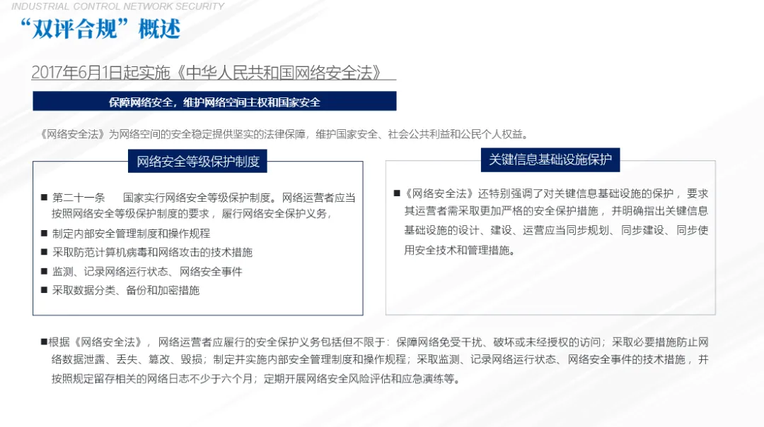 该方案广泛适用于电力、石油化工、轨道交通、智能制造等关键基础设施领域。在部署模式上,支持旁路镜像监测与串联防护两种形态,既可在不影响现有生产的前提下完成风险评估,也能在核心控制区边界实施强制防护。针对等保2.0三级及以上系统的合规需求,"双屏合规"提供覆盖"定级-备案-建设-测评-运维"全生命周期的支撑能力:建设阶段通过边界防护满足"安全区域边界"技术要求,运维阶段依托日志审计与集中管理平台实现"安全管理中心"的审计追溯。实际案例中,某大型石化企业部署该方案后,成功阻断多起针对DCS系统的勒索软件渗透尝试,并在年度等保测评中实现高危风险项清零,验证了其在复杂工控环境下的实战防护价值与合规支撑能力。