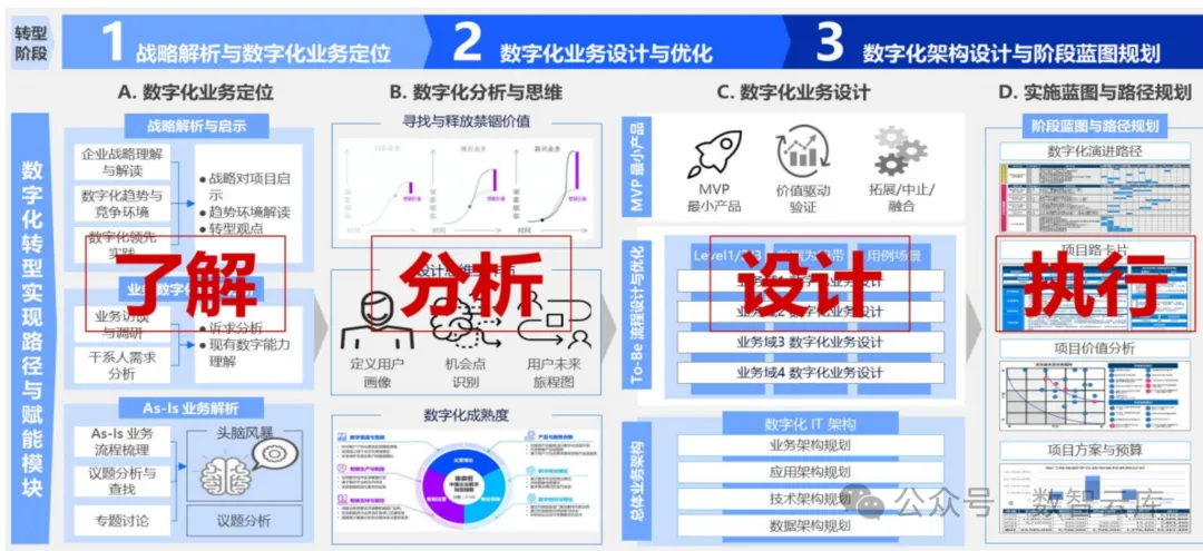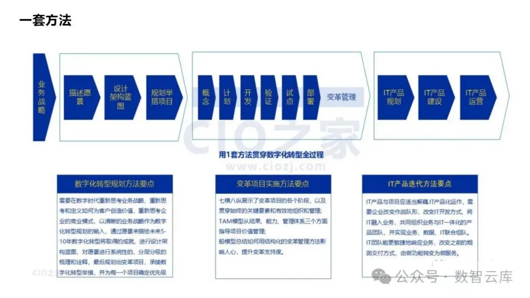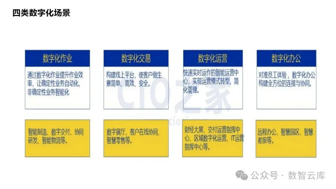 数字化转型框架:包括一套方法、四类数字化场景、三个平台能力。