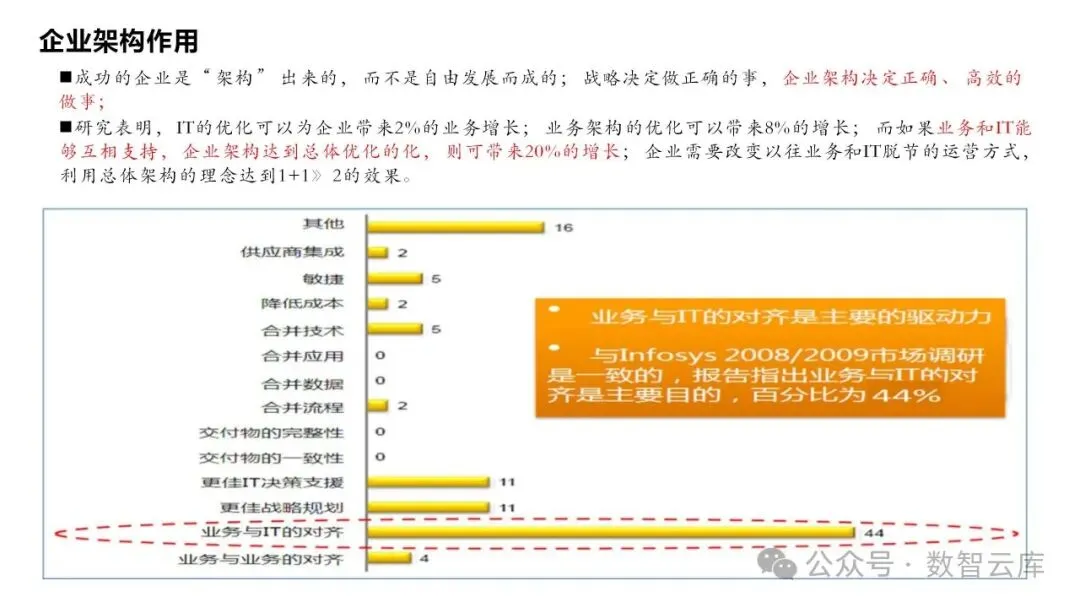 企业架构(EA)是组织内部用于指导信息技术投资和治理决策的蓝图,它涉及业务架构、数据架构、应用架构和技术架构的综合规划。企业架构的关键要素包括: