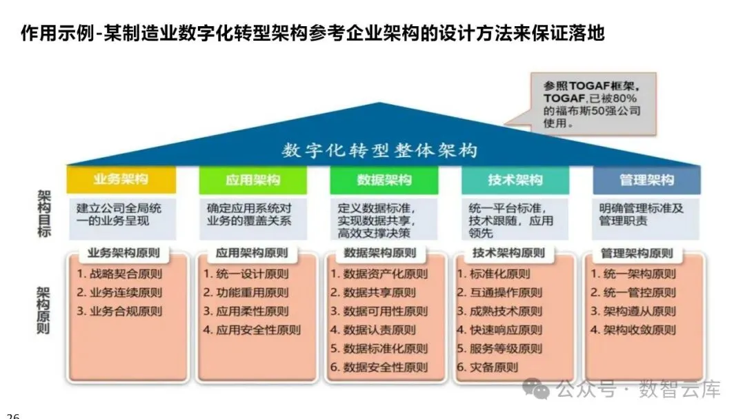 架构框架:如TOGAF(开放群组架构框架),提供一套方法论和工具来支持企业架构的开发和管理。