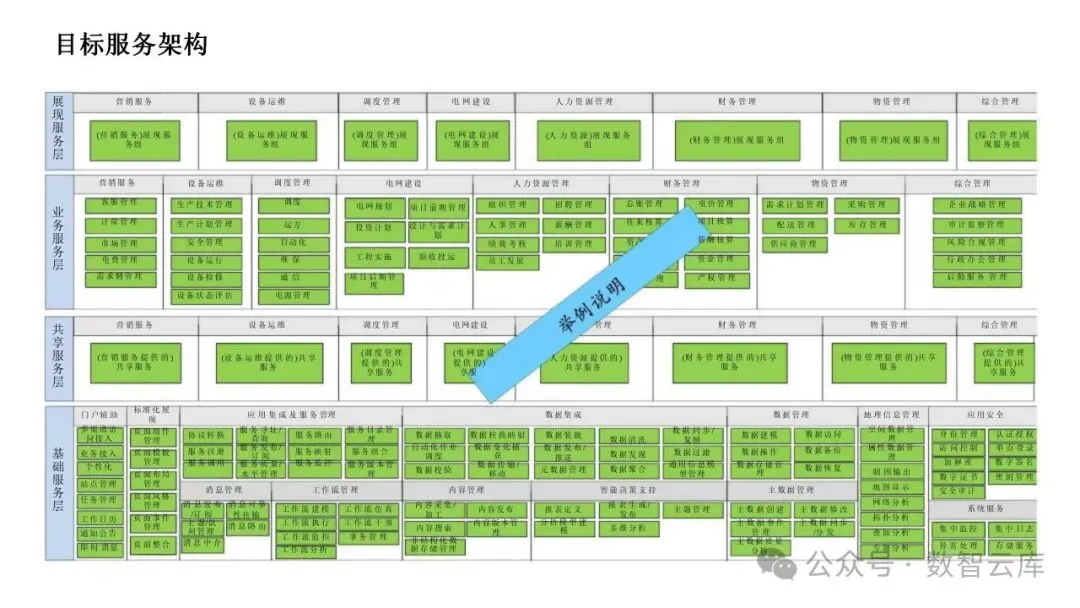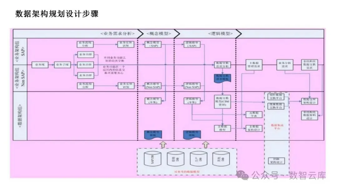 数据架构:定义数据管理和服务的结构,包括数据治理、数据模型和数据流。