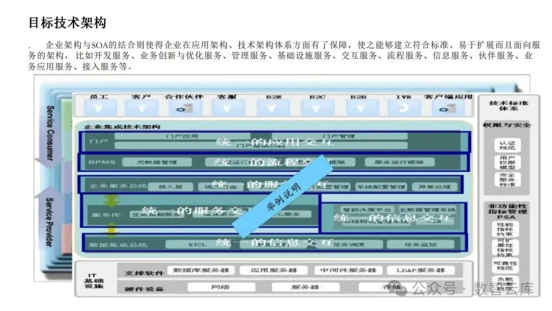 技术架构:定义技术基础设施,包括硬件、软件、网络和标准。