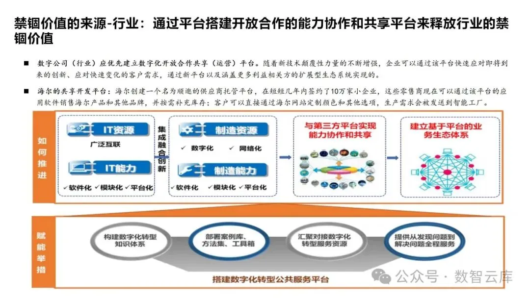 数字化转型常常涉及到构建或加入数字化生态系统,通过合作伙伴关系和平台战略,实现资源共享、协同创新和价值共创。