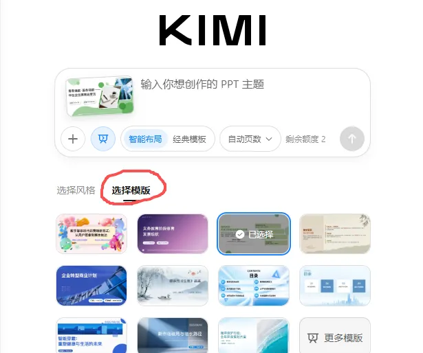 大纲定稿后,在AI回复框的下方会出现一个“一键生成PPT”的红色按钮,点击它进入模板选择界面。你可以根据学科或课堂氛围(如语文选清新、历史选古典)挑选一个合适的模板。选择后,Kimi就会把大纲内容自动填充进去。