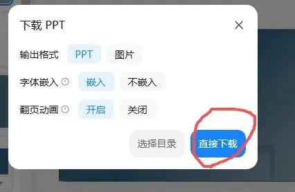 生成完成后,网页的右上角点击“下载”按钮,再选择保存地址就可以得到一个PPTX格式的文件。
