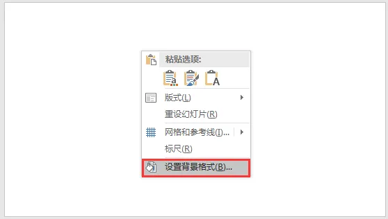 (1)在PPT页面中单击鼠标右键,在弹出的快捷菜单中选择“设置背景格式”。
