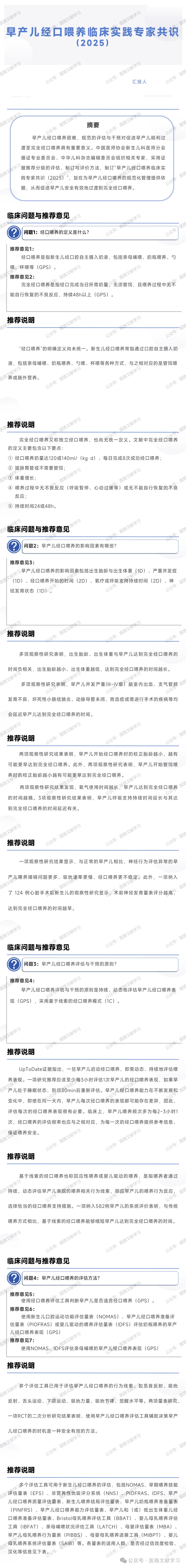 中国医师协会新生儿科医师分会循证专业委员会,中华儿科杂志编辑委员会. 早产儿经口喂养临床实践专家共识(2025)[J].中华儿科杂志, 2025, 63(1): 27-38. DOI: 10.3760/cma. j.cn112140-20240911-00632.