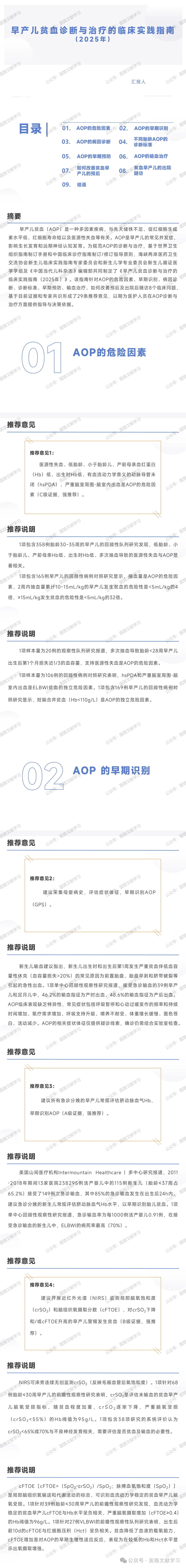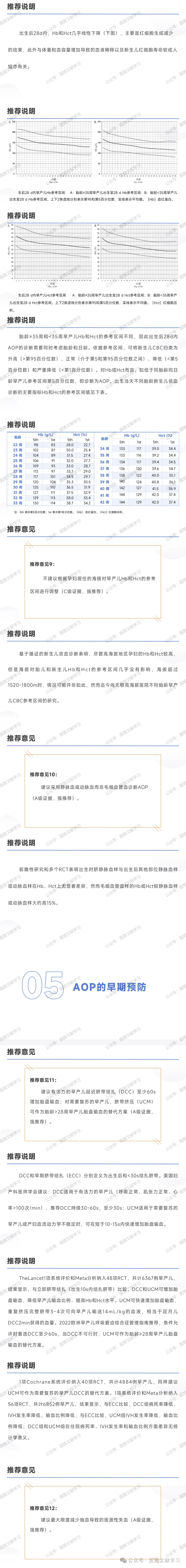 建议所有急诊分娩的早产儿常规评估脐动脉血气 Hb,早期识别 AOP (A 级证据,强推荐)