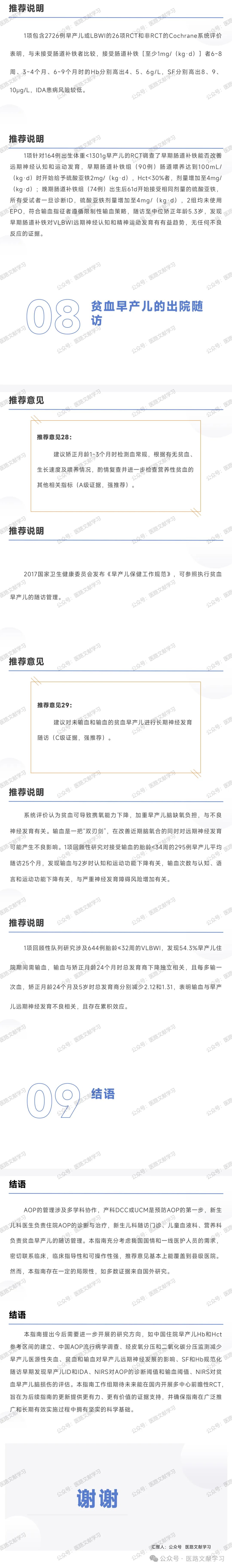 建议对未输血和输血的贫血早产儿进行长期神经发育随访(C 级证据,强推荐)