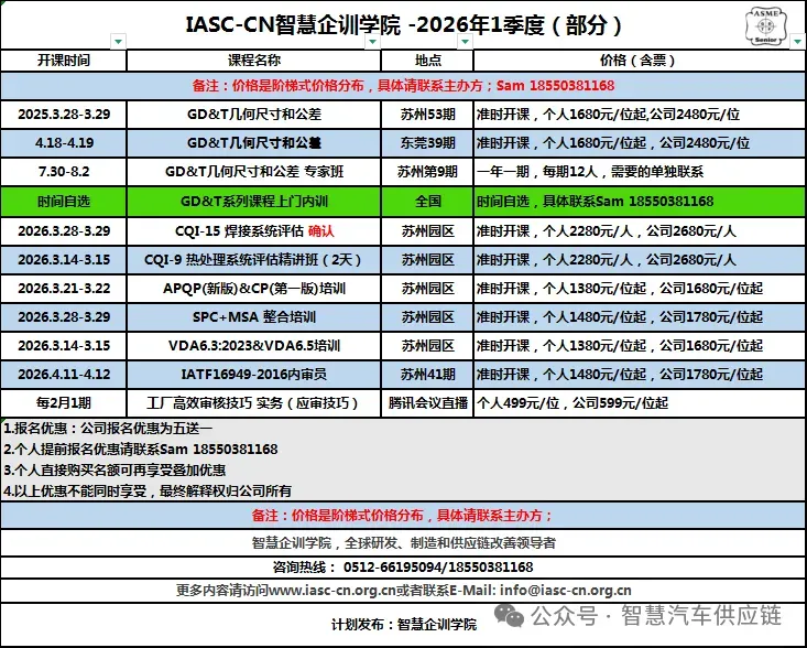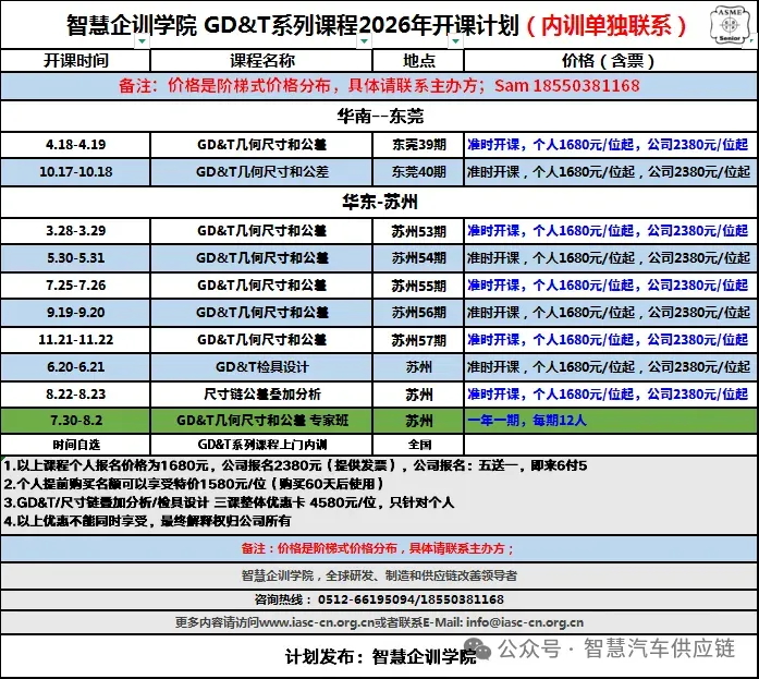 制造业培训,请认准智慧企训学院,欢迎联系Sam.yang@iasc-cn.org.cn准时开课!2024年GD&T技术专家5天班(限12位)确认开课!12.28-12.29,GD&T苏州站第46期|苹果公司声学PD团队GD&T内训圆满结束!2024.8.21-8.222025年期(总第9期)&T专家班培训 ~版权课程,2025.7.3-7.6大众汽车(中国)研发团队&一汽大众各基地GD&T高级培训合影分享华为技术&华为机器 GD&T高级培训圆满结束!福耀集团GD&T培训以及项目培训合影分享以及回顾美国卡特彼勒CAT 尺寸链公差叠加分析内训圆满结束行业巨头公牛集团[603195]GD&T培训合影分享冠军企业先临三维GD&T内训圆满结束!培训快报|大众中国发动机研发团队3天GD&T内训圆满结束!项目案例:福耀集团尺寸工程项目辅导项目圆满结束!公牛电器项目第四期:基于家电的尺寸链分析工作坊--培训圆满结束!埃梯梯科能电子(深圳)GD&T高级培训圆满结束!宾科紧固件GD&T高级实战项目-2天圆满结束!公牛集团尺寸工程咨询第一期GD&T3天培训圆满结束!兆威机电(代码:003021)GD&T高级实战项目-2天圆满结束!航天电器某公司GD&T内训圆满结束!走进世界巨头好孩子集团某研发中心,GD&T内训圆满结束!科技巨头华为集团GD&T内训圆满结束!&一汽大众全国基地GD&T培训合影三一重工常熟基地某研究院GD&T内训圆满结束!|GDT培训再次走进世界巨头卡特彼勒某研发中心,GD&T内训圆满结束!
