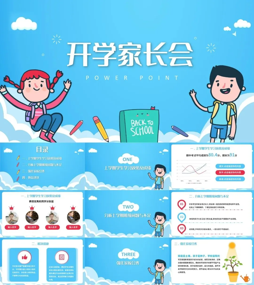 开学必备PPT模板,包含:主题班会、开学动员班会、开学收心班会等模板。