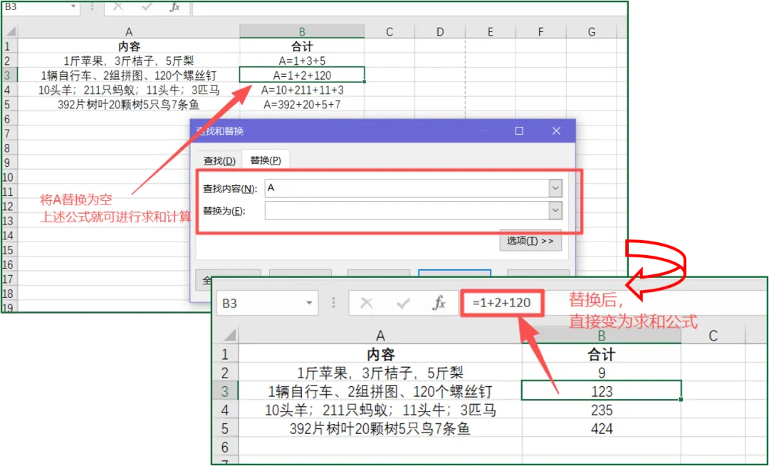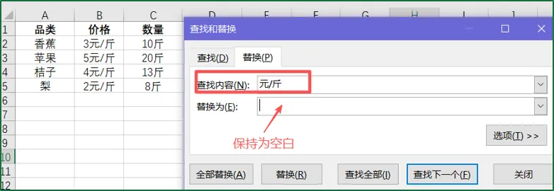 ③关键步骤,组合键【Ctrl+F】,将【A】替换为空;