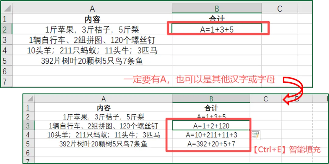 注意:公式中的【A】可以是任何字母或汉字。