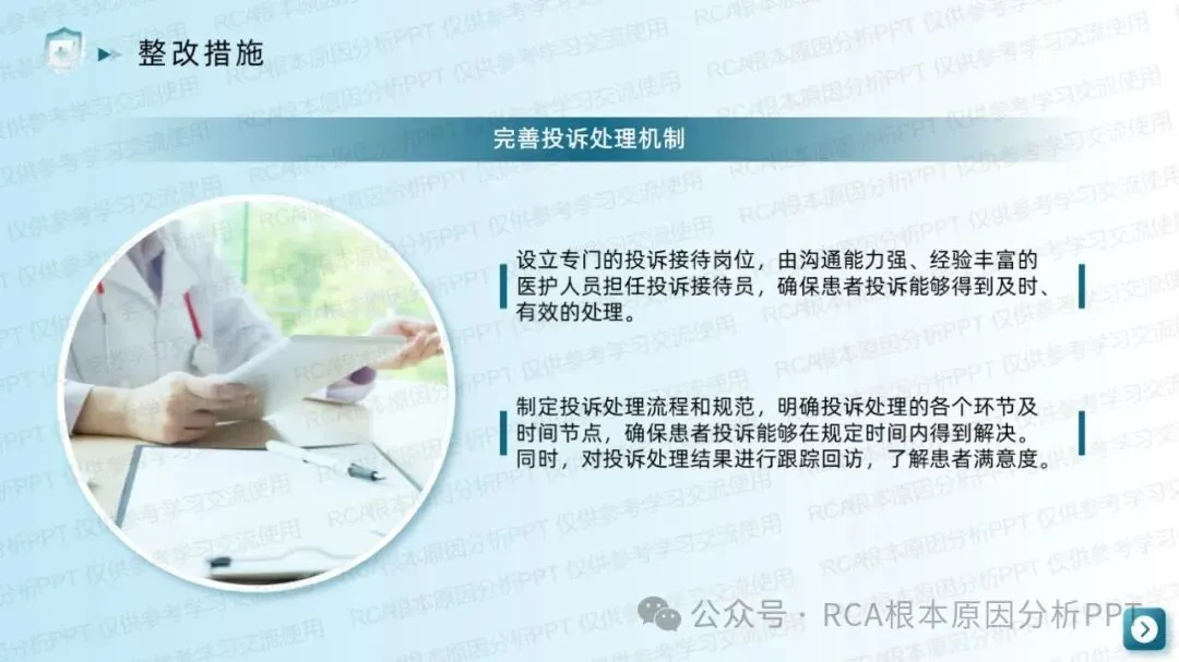 制定投诉处理流程和规范,明确投诉处理的各个环节及时间节点,保证患者投诉能在规定时间内得到解决。同时,对投诉处理结果进行跟踪回访,了解患者满意度,不断改进服务质量。