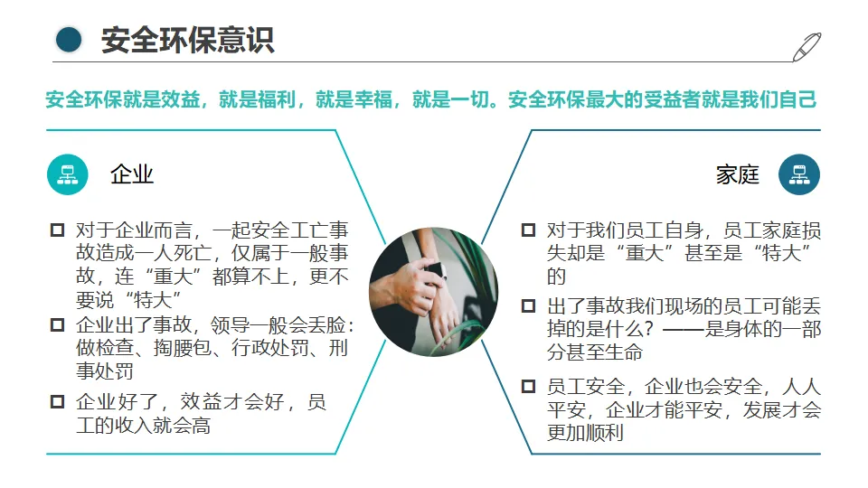 :现场员工可能丢掉的是身体的一部分,甚至生命。员工安全,企业才能安全;人人平安,企业才能平安,发展才会更加顺利。