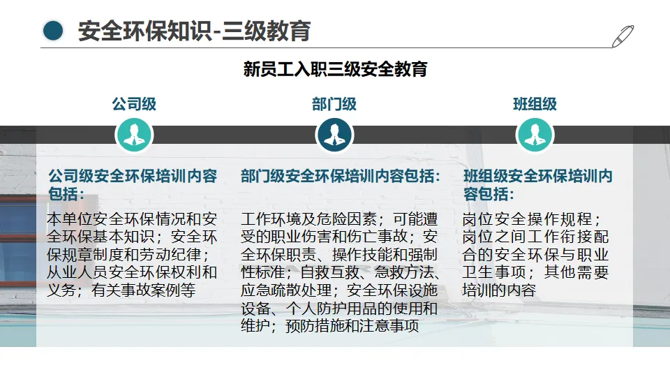 新员工入职必须接受三级安全教育,这是国家法律法规的强制要求,也是企业生存发展的需求,更是员工自我保护的需要。