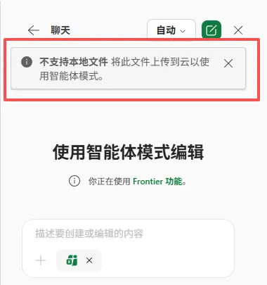 Excel 里的 Copilot 功能非常丰富且强悍,从简单的插入公式列、修改调整某些行、简单数据分析,到现在的 Python in Excel 高级分析,Excel 智能体模式,COPILOT函数,自然语言直接生成公式,自动提示公式等:持续不断优化,方便用户操作,是每一个产品的追求,Excel 中的 Copilot 也不例外。Excel 中的 Copilot 现在支持本地文件在这之前,Excel 中的 Copilot 只支持打开自动保存、存储于onedrive中的文件:现在,本地文件也支持 Copilot chat 查询和分析但是要注意,使用 Excel 智能体模式时,依然要将文件上传到云。Copilot 菜单里的 “应用技能”按钮 被优化在这之前,(拥有MS365 Copilot许可证)Excel 中的 Copilot 按钮点击后,会出现两个子菜单:聊天和应用技能(App Skills):现在,这个菜单中的功能正在被逐渐整合到 copilot chat 和智能体模式中,原来的应用技能按钮就消失了:为什么这项更改很重要