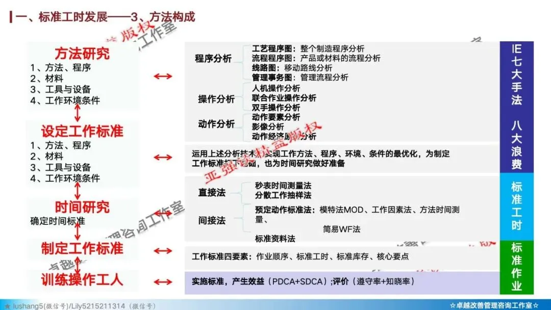 核心是“求准”,确定完成工作所需的合理时间。它的目标是消除时间浪费,为计划、定价和考核提供标准,主要技术包括 :