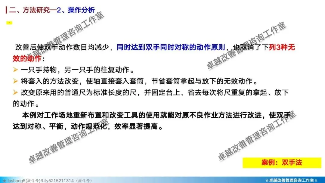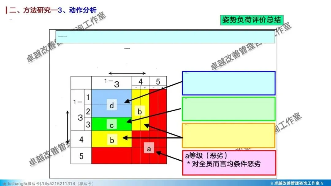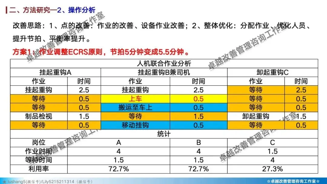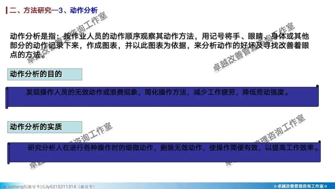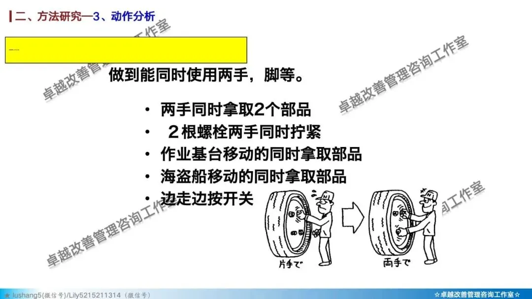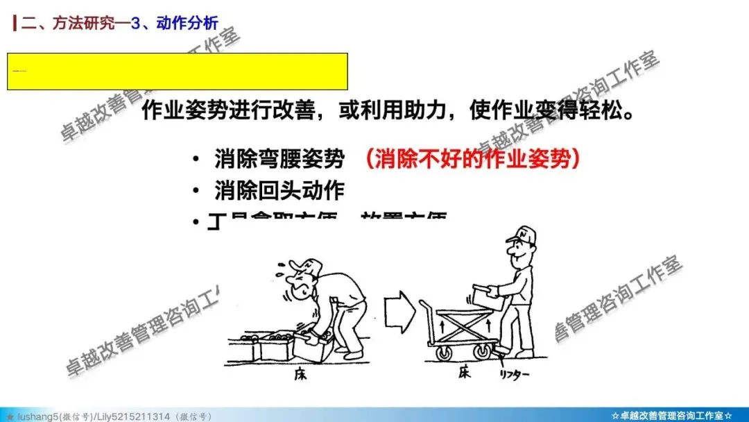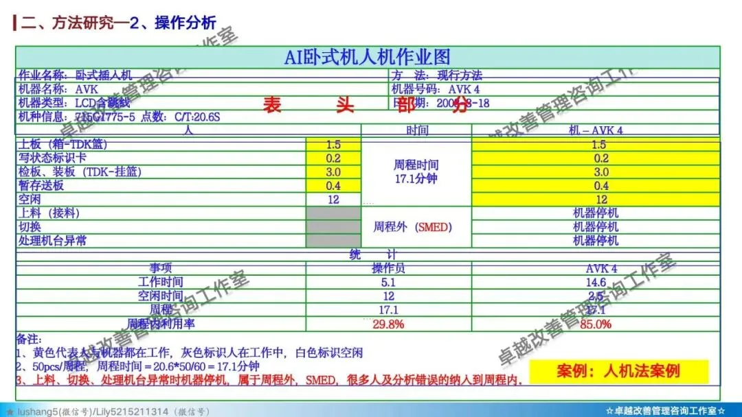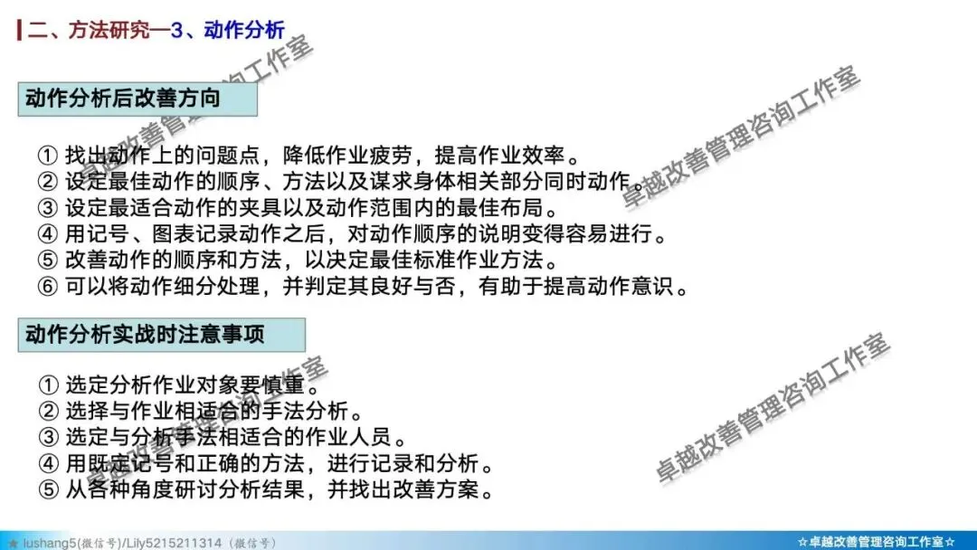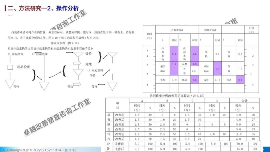 · 作业分析:聚焦于某个具体工序或工位,研究人机配合是否高效,或者多人联合作业是否协调,通过人机作业分析、联合作业分析等改善作业结构 。