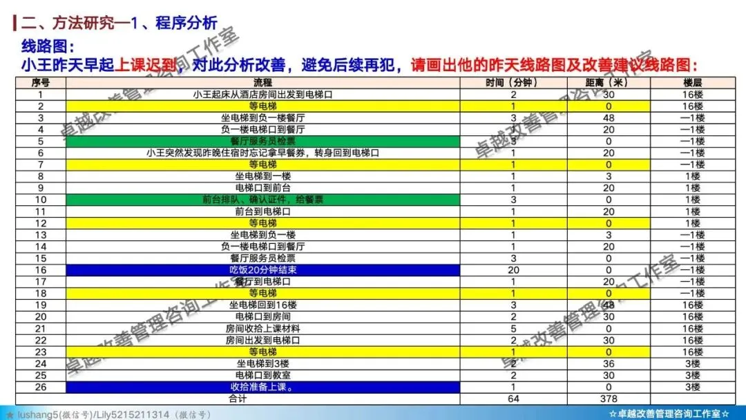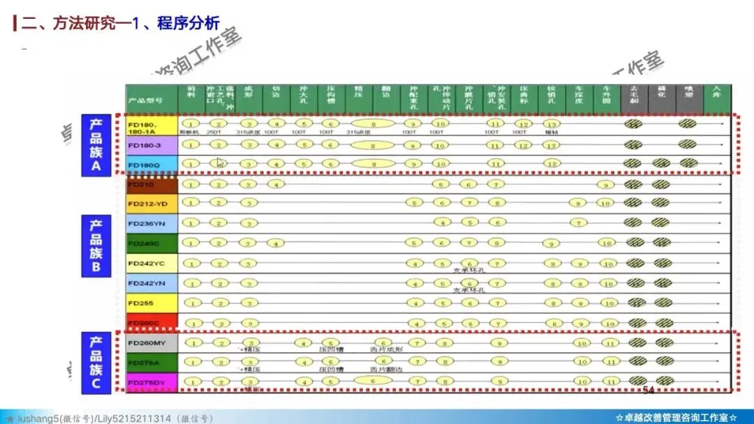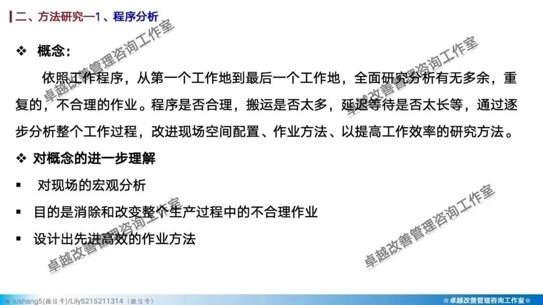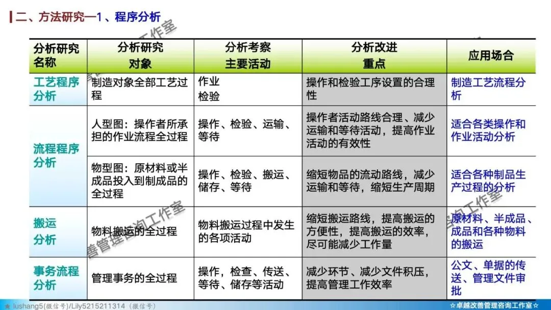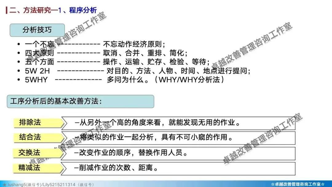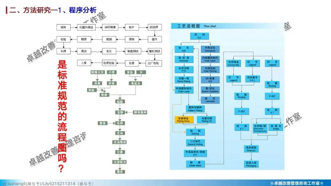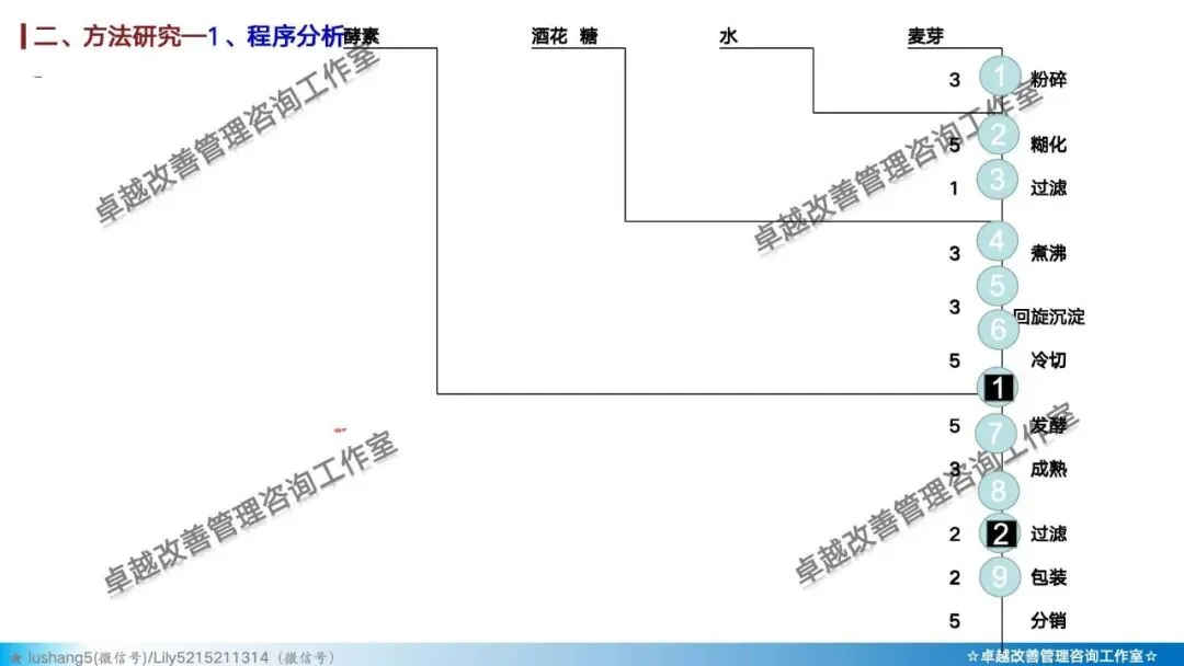 · 程序分析:从宏观视角审视整个生产流程,通过工艺程序图、流程程序图等工具,分析有无多余或重复的环节,优化整体路线 。