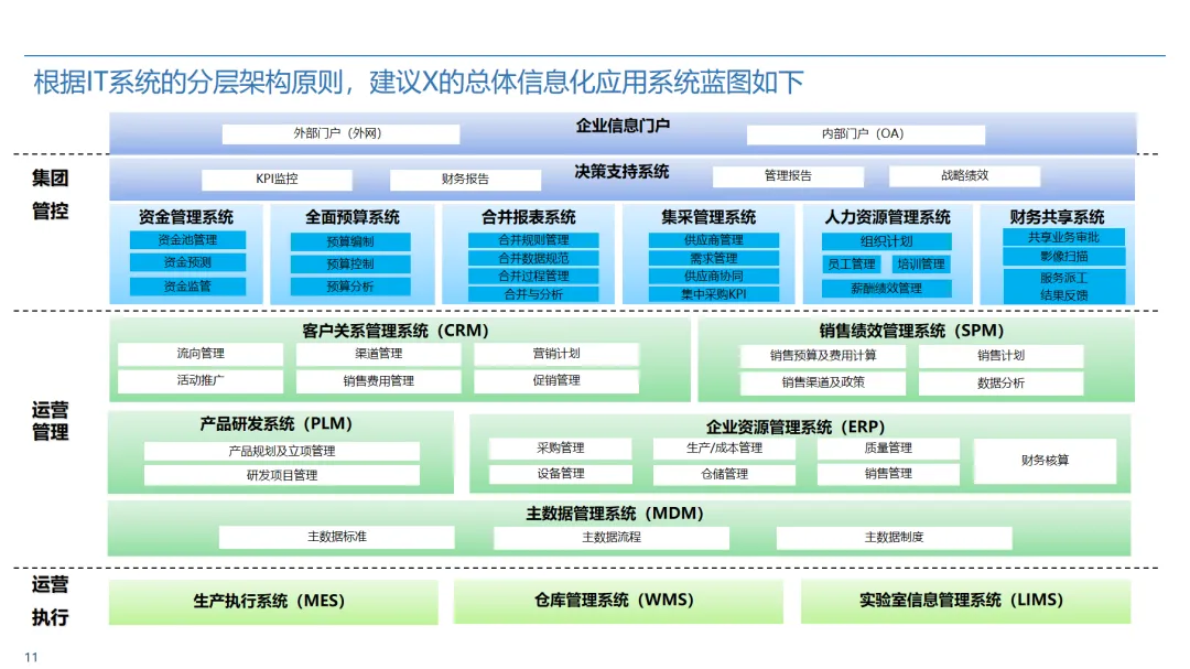 运营执行层聚焦各业务环节的系统落地与功能完善,让财务管控的要求落到实处。升级 WMS 实现全仓库精细化管理,部署 MES 实现生产流程数字化与可追溯,搭建 LIMS 完善实验室信息管理,同时推进主数据治理体系建设,实现物料、客户、供应商等主数据的标准化管理。通过各执行系统的建设与集成,让财务管控渗透到仓储、生产、研发等每一个业务节点,实现全流程的精细管控与数据化运营,为集团财务管控提供坚实的执行层支撑,推动集团整体管理效率与效益双提升。