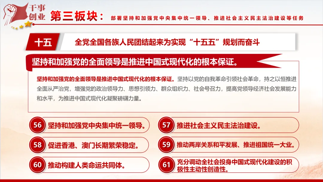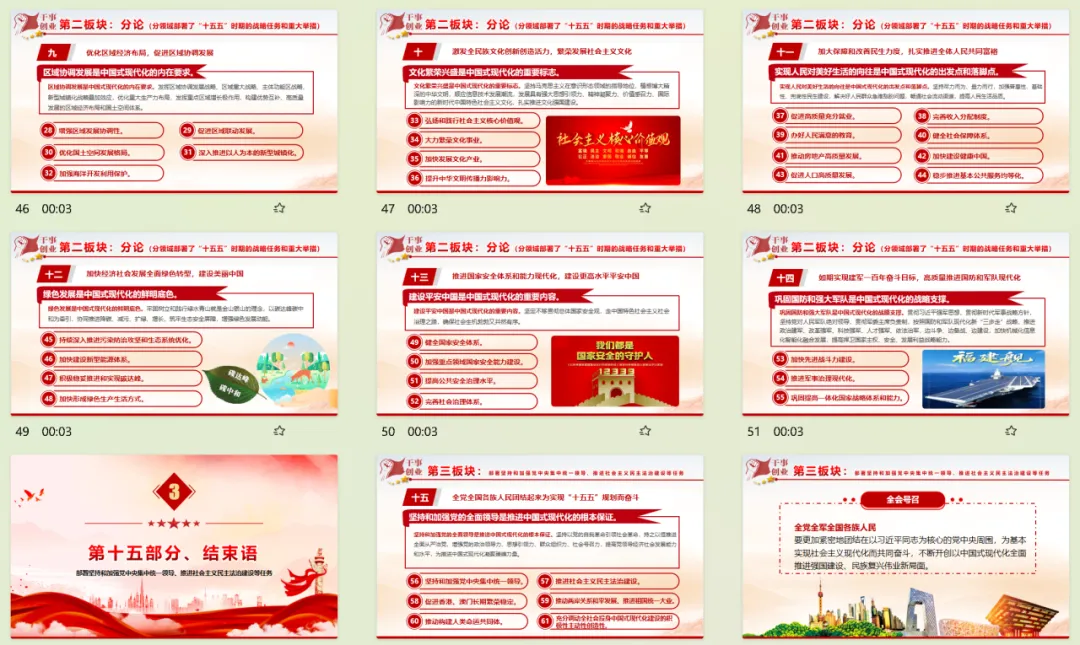 PPT共88张,含2段视频,配套演讲稿15800字,时长90分钟,紧扣学习教育要求,完整包含五个部分内容,详情见下图。适合机关、国企、事业单位、高校等单位开展专题学习,各行业通用。