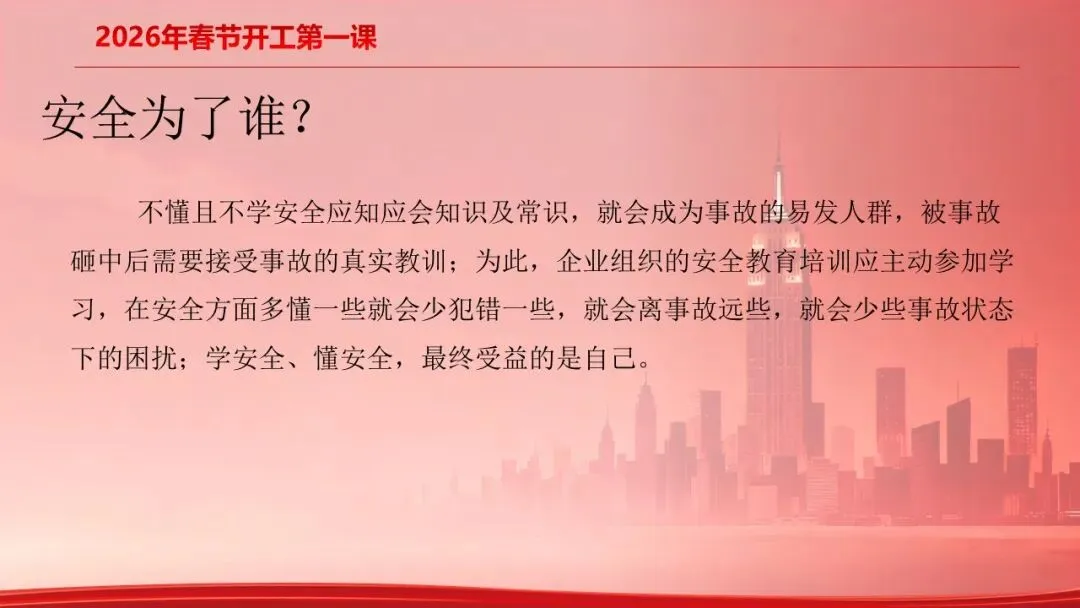 最新!2026年春节复工“开工第一课”安全第一课,全员培训(附最新PPT)!