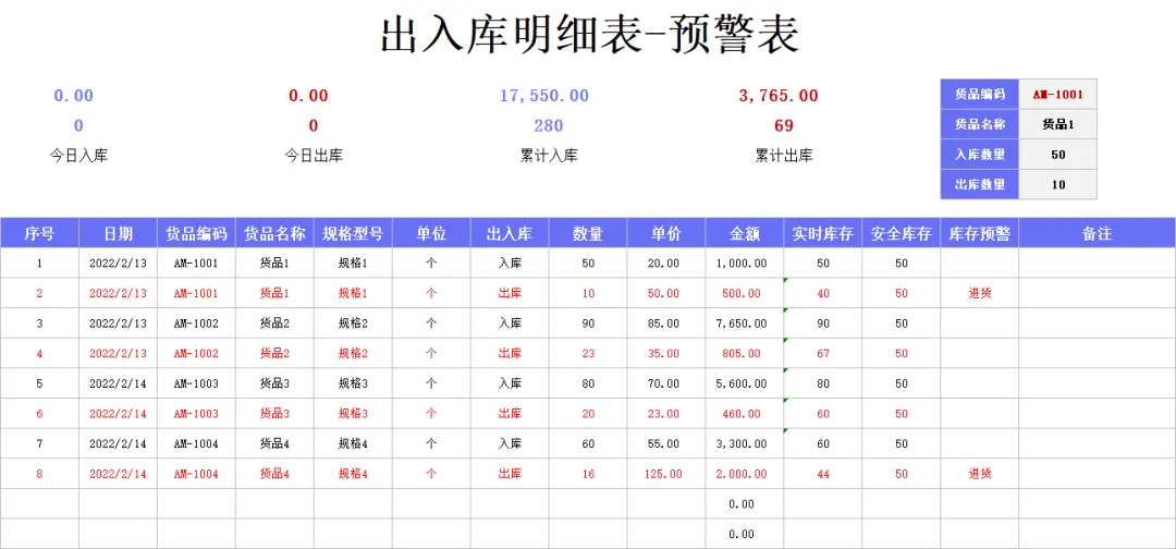 做仓管到月底一盘点,库存对不上;再一看,低库存还没预警出来。真的太痛苦了!每天都要手动计算。