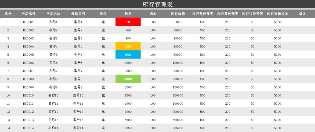 别再自己做表格了,直接拿着Excel大神做的这4套出入库库存预警明细表套,填入库存基础数据,自动计算,自动预警,每天只需要在统计数据的时候或者是早上看看是否存在低库存的产品就行,省事儿还方便!