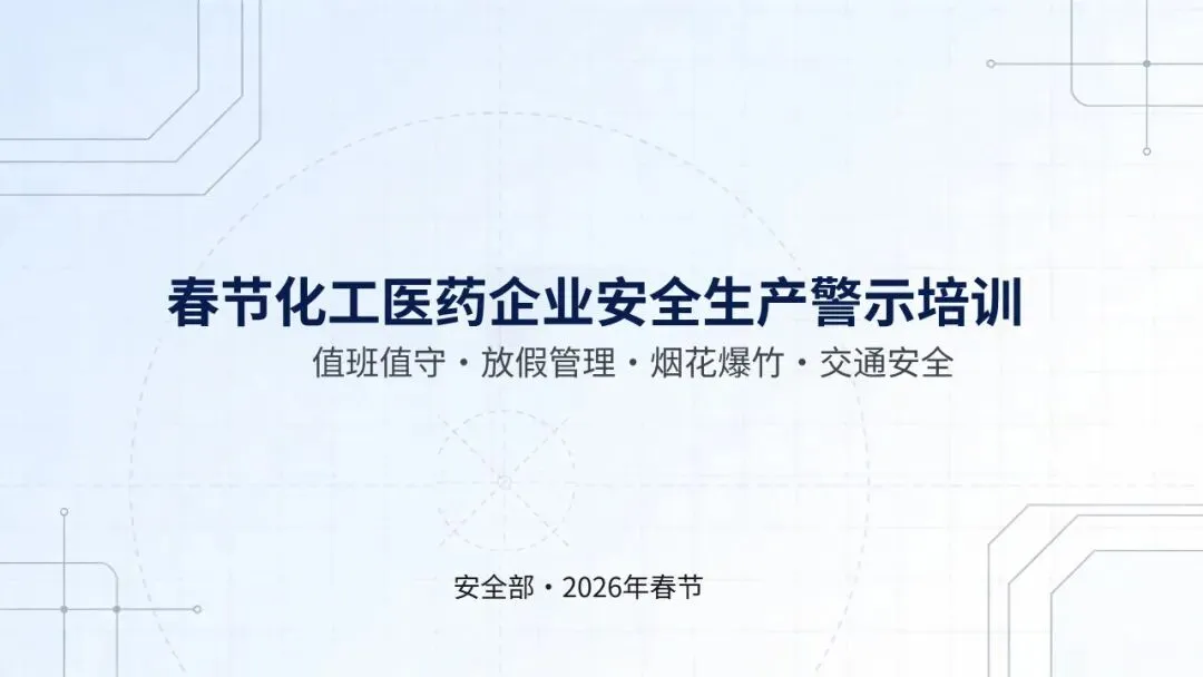 当前位置:首页>PPT>PPT ‖ 节后复工系列【第5套】15-春节化工医药企业安全生产警示培训(10页)