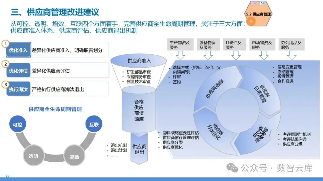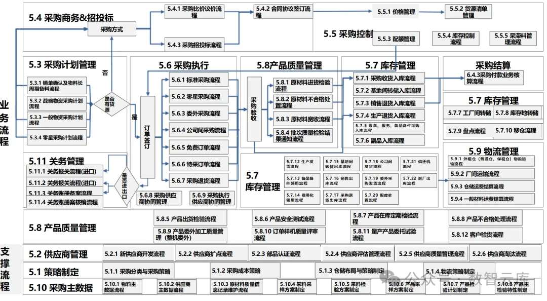 业务流程体系设计是企业内部管理的重要组成部分,它涉及到对企业内部各个业务流程的规划、优化和重组。对于制造业而言,战略采购和智慧采购管理以及采购物控业务流程框架是业务流程体系设计中的关键环节。以下是对这些概念的简要介绍: