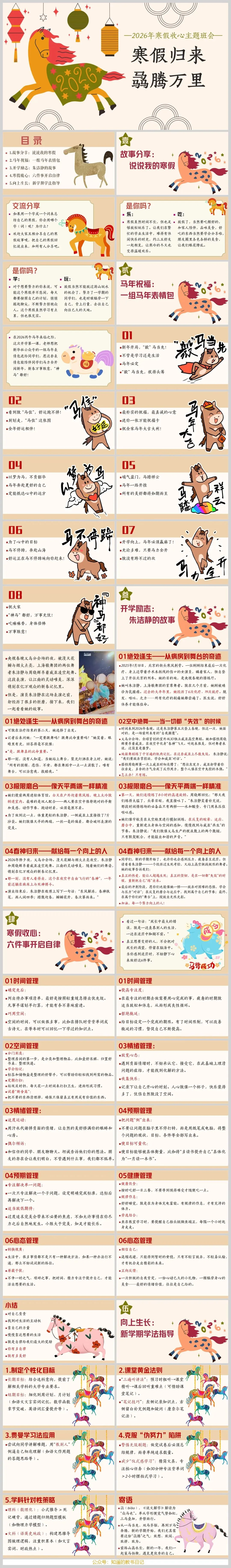 今天分享一份 《2026年寒假收心主题班会:寒假归来,骉腾万里》PPT!