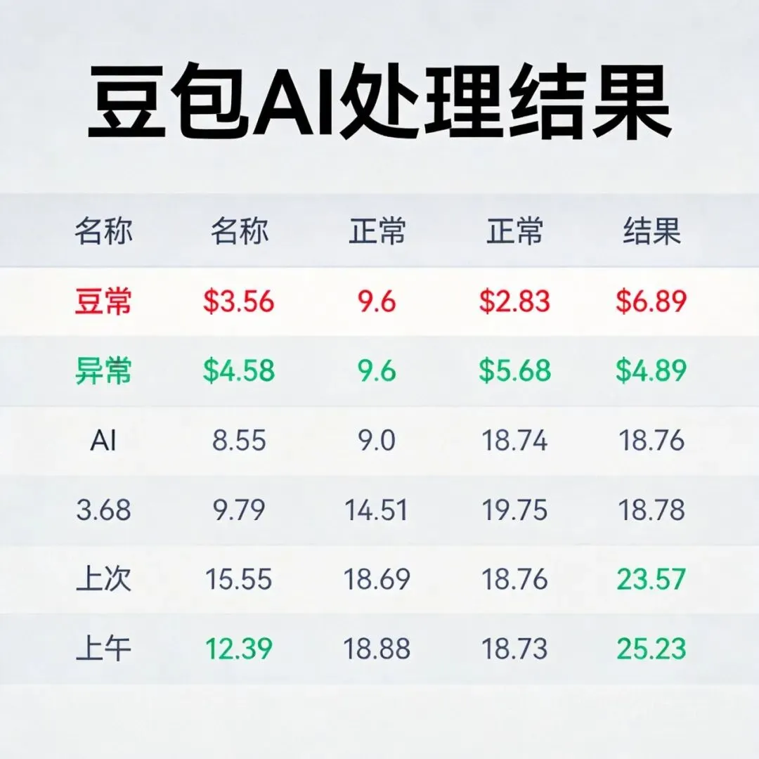 豆包会自动分析数据分布,把异常的记录标出来。我试过一个6000行的表格,它大概几秒钟就处理完了,准确率还挺高的。