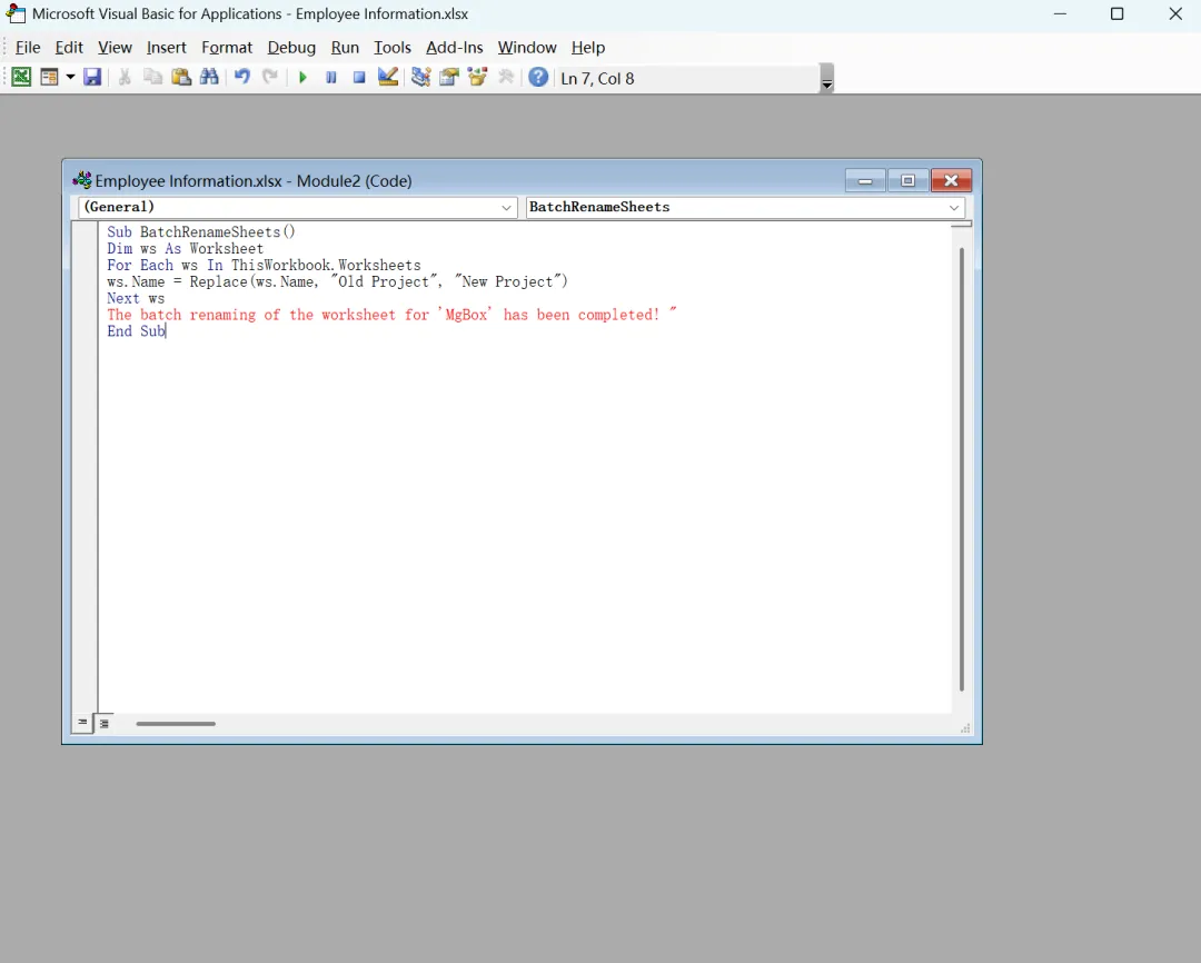 方法三:使用 VBA 宏批量替换 Sheet 名称