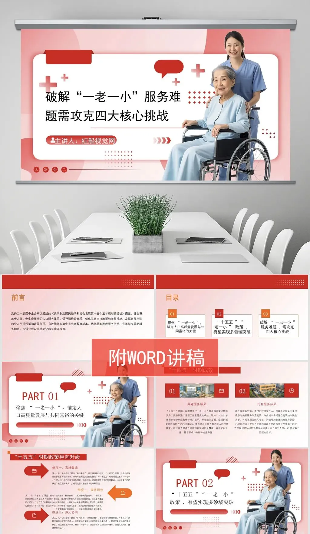 本课件主要内容为破解“一老一小”服务难题需攻克四大核心挑战学习贯彻党的二十届四中全会精神PPT课件,讲稿字数:2796字。