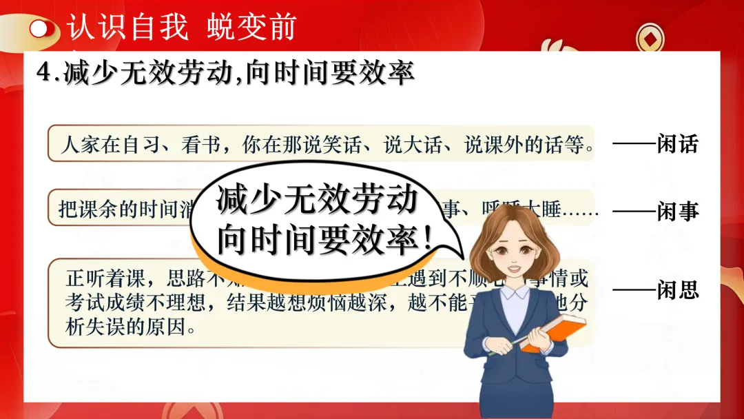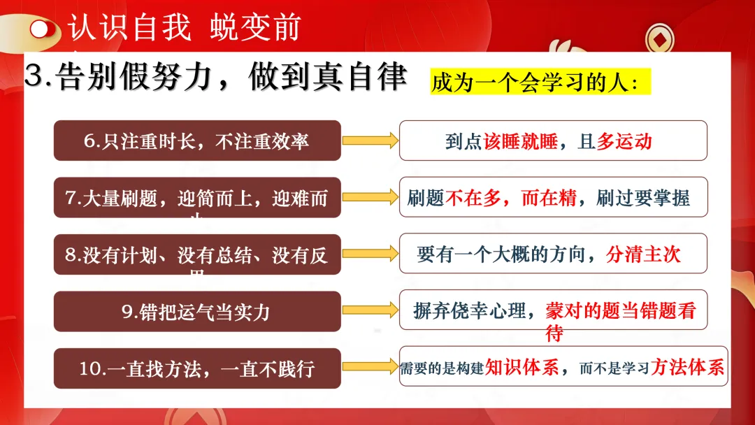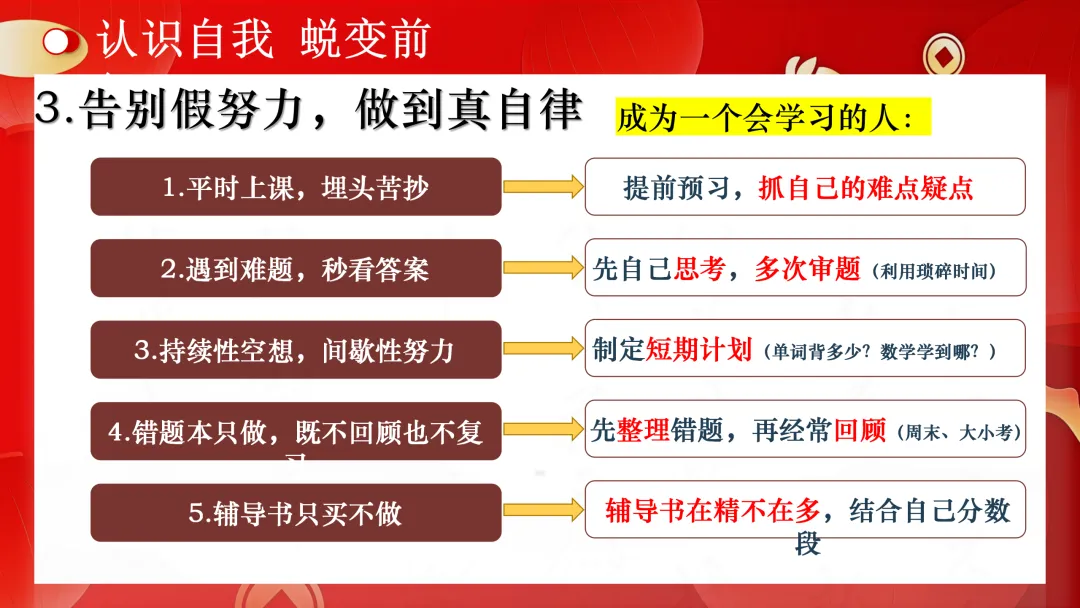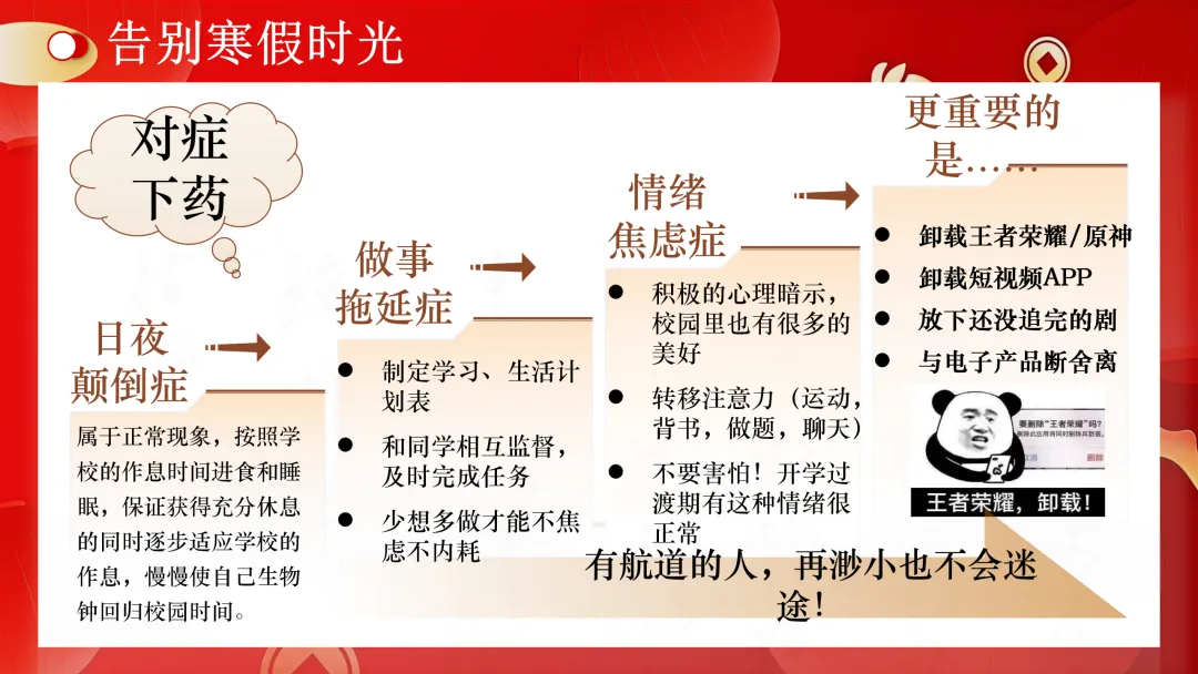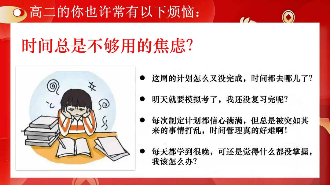 其主要内容分为4部分:01马启新航 开学收心;02认识自我 蜕变前行;03认识高二 清晰方向;04把握高二 蓄力高三。
