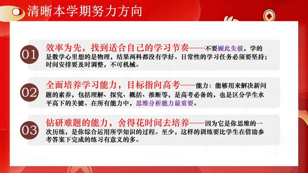 其主要内容分为4部分:01马启新航 开学收心;02认识自我 蜕变前行;03认识高二 清晰方向;04把握高二 蓄力高三。