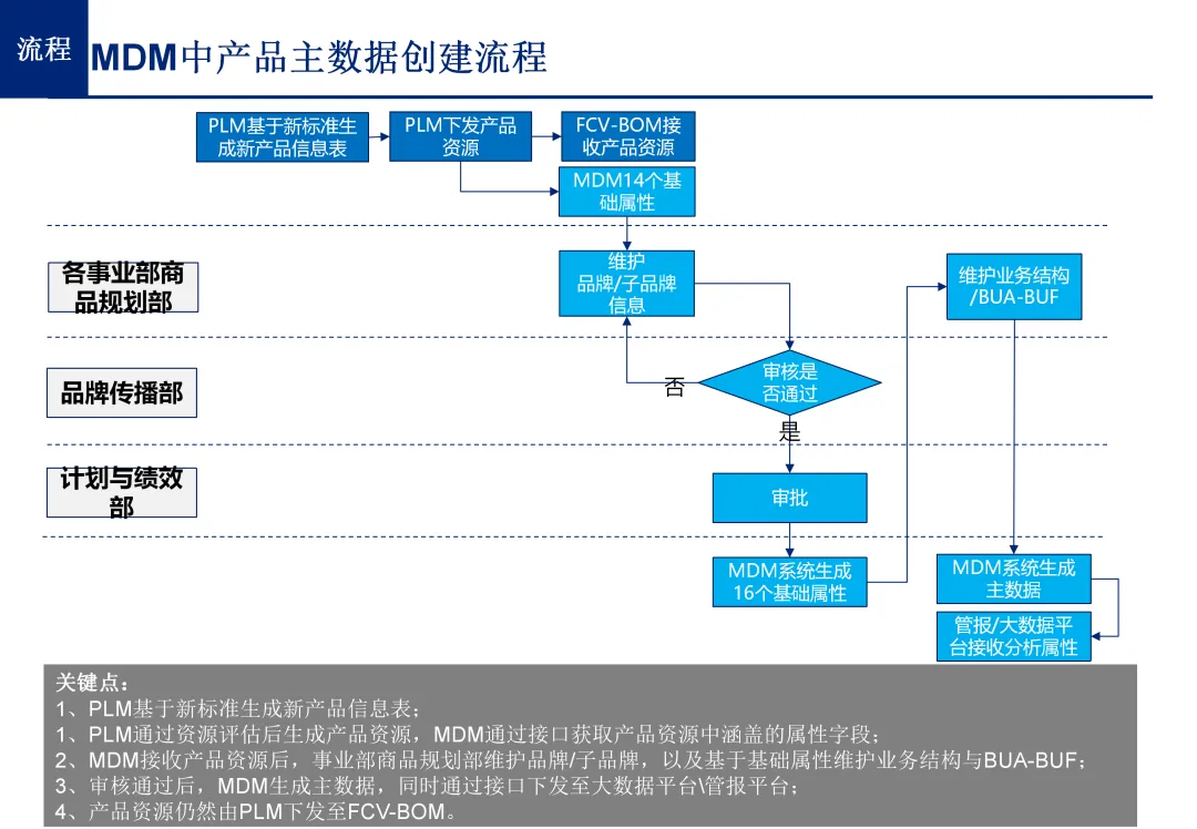 在 “如何管” 的落地方向上,方案明确了 “流程规范先行、系统支撑落地” 的双轮驱动原则。流程层面,设计主数据从申请、审批、创建、变更到作废的全生命周期管理流程,解决行业 “流程缺失、执行不力、变更无管控” 的问题;系统层面,规划集团级统一主数据管理平台,实现主数据 “一处创建、多处复用、全局共享”,打通异构业务系统的数据壁垒,彻底解决数据孤岛问题。