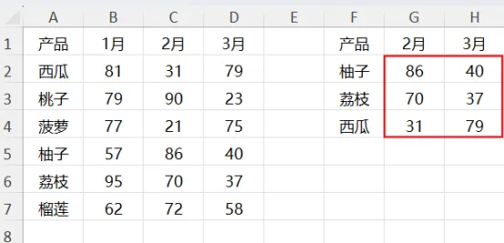 假设场景是从左边查找出指定产品和月份的数据,如红色方框标记。