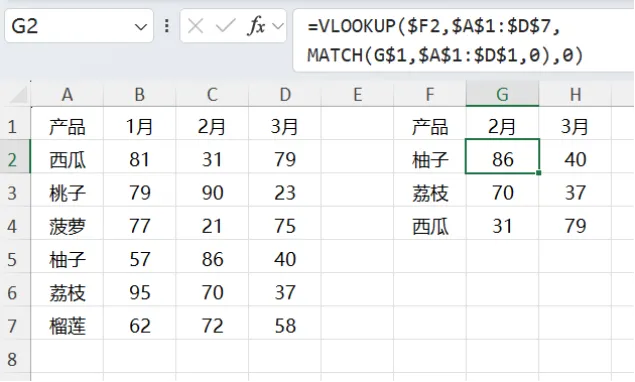 前些年陆续总结过交叉查找的方法,其中应用最广泛的是VLOOKUP+MATCH组合: