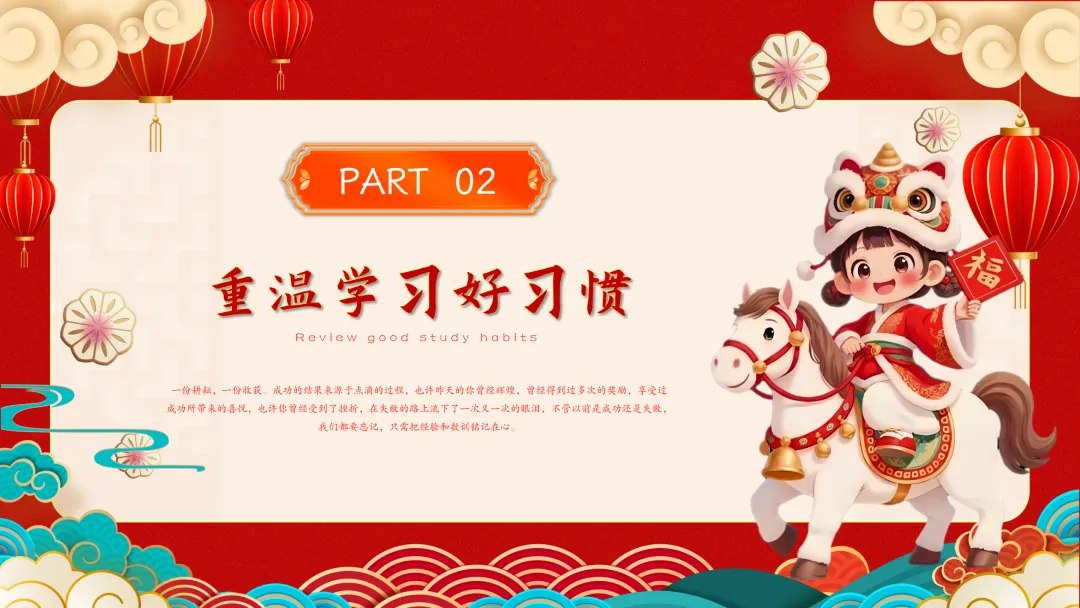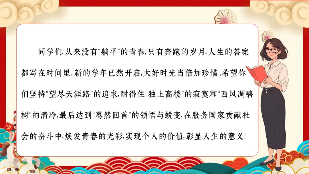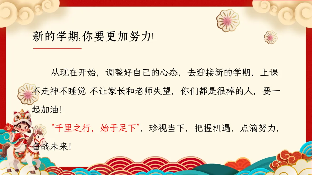 很高兴在这与您相遇,如果您是一位班主任老师,每天除了应对繁重的教学工作,还要加班整理班级、教务、教研、课件PPT资料,请关注下方的“春雨教务资料”,让我们风雨同路、一起成长~今天分享的是2026春季二年级开学第一课主题班会的ppt课件和配套的发言稿,主题是《小马奔腾,快乐起航》。完整版