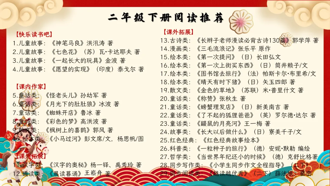 在学习中,无论是哪门学科,都离不开阅读,阅读能力的好坏,直接关系到其他学科学习效率的高低,正像苏霍姆林斯基所指出的那样,“一个人欠缺流利的阅读能力,他掌握知识的能力也就自然不会很强,没有良好的阅二年级下册阅读推荐: