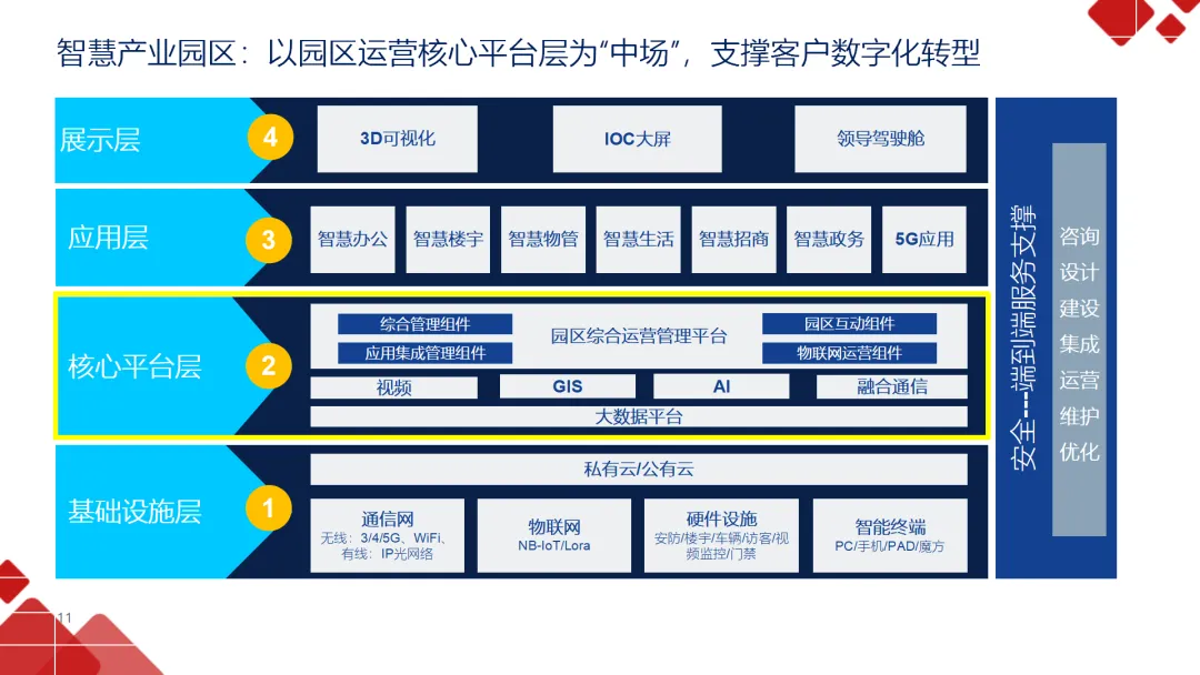 “十五五” 规划纲要强调,要 “加快数字基础设施建设,推动新一代信息技术与产业深度融合”。数字底座是智慧产业园区的 “生命线”,开局之年需重点推进基础设施智能化升级与技术融合应用: