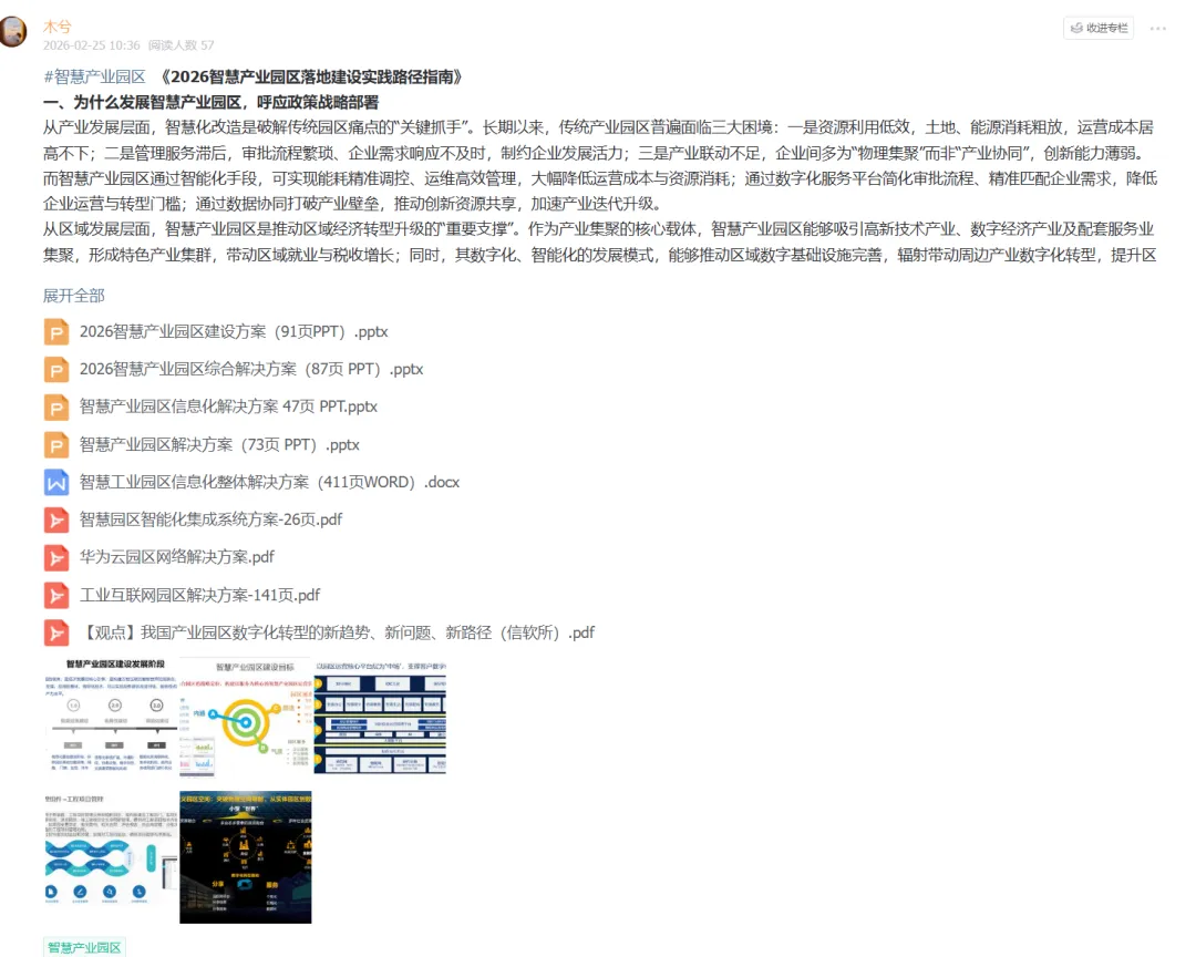 (【数智行业·领地】星球,搜索“智慧产业园区 ”标签方案完整版)苹果用户公众号回复“1”加木兮或者直接加木兮(MuxiYuebao0920),加入星球~