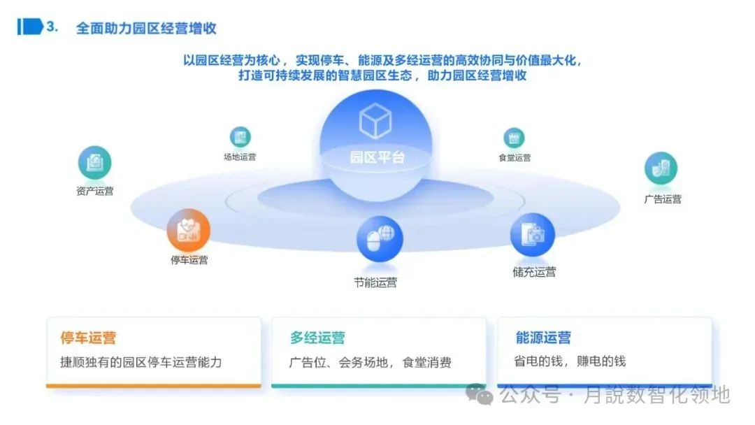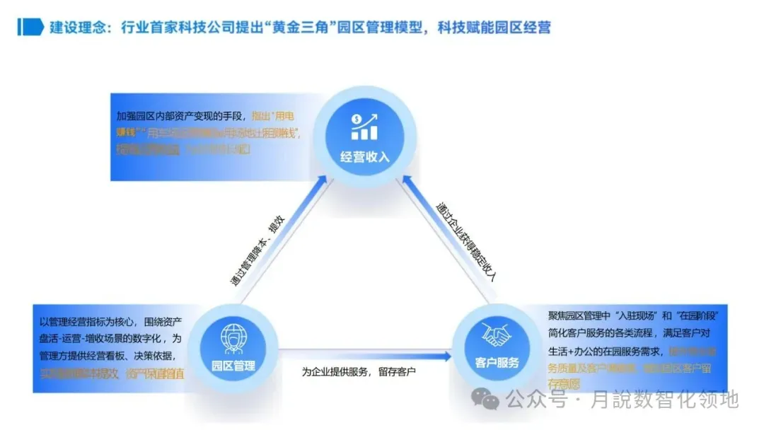传统园区普遍存在能源利用效率低、碳排放管控粗放等问题,而智慧产业园区通过构建智能能碳管理系统,实现对电力、热力、天然气等能源消耗的实时监测、精准调控;依托可再生能源利用、节能技术改造、循环经济模式构建,推动园区能源结构向清洁能源转型;同时,通过数字孪生技术优化园区布局,实现土地、水资源等资源的高效利用,让园区成为 “十五五” 时期绿色低碳发展的 “实践样本”。